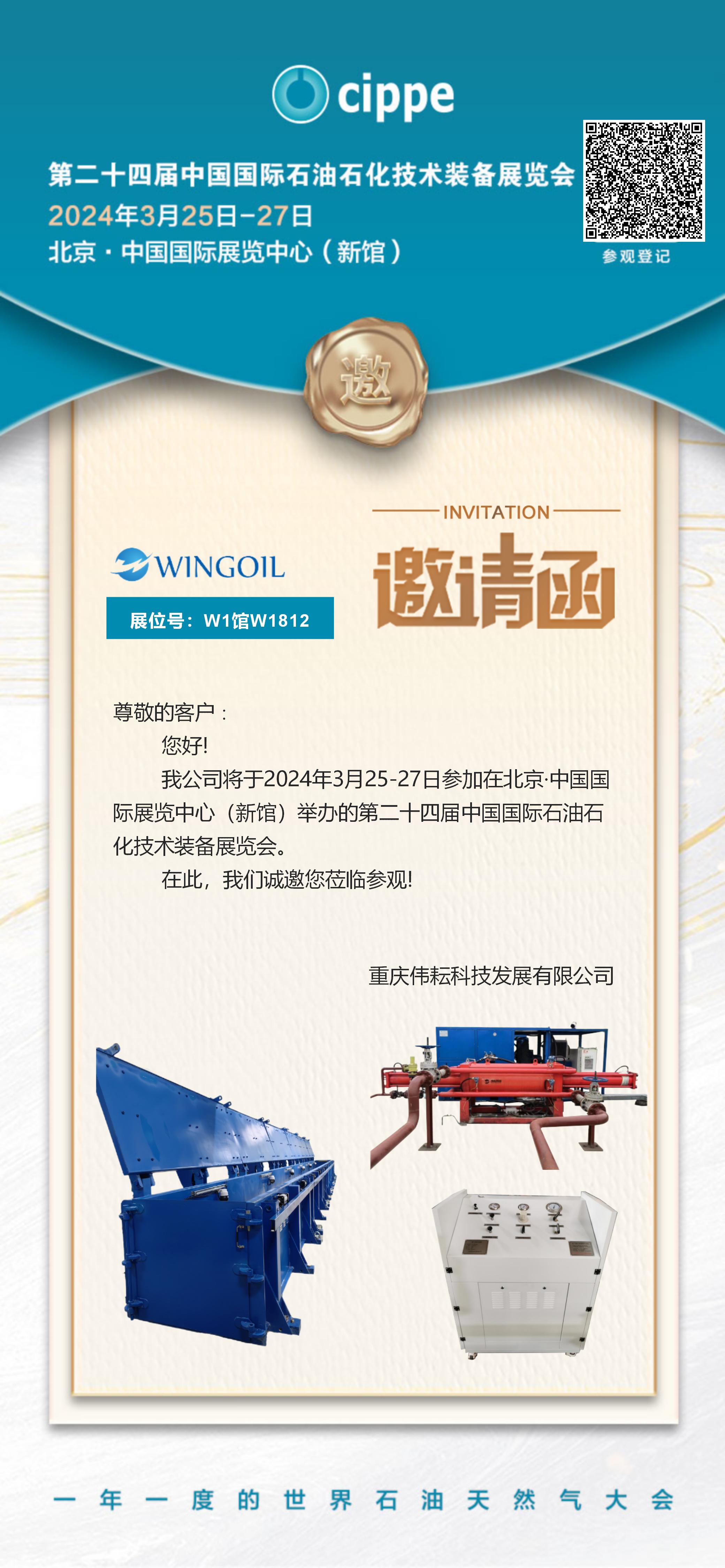 2024年3月25-27日,北京·中國國際展覽中心(新館)舉辦第二十四屆中國國際石油石化技術(shù)裝備展覽會,我們在W1館W1812靜候您的光臨,期待與您真誠攜手、共創(chuàng)佳績!